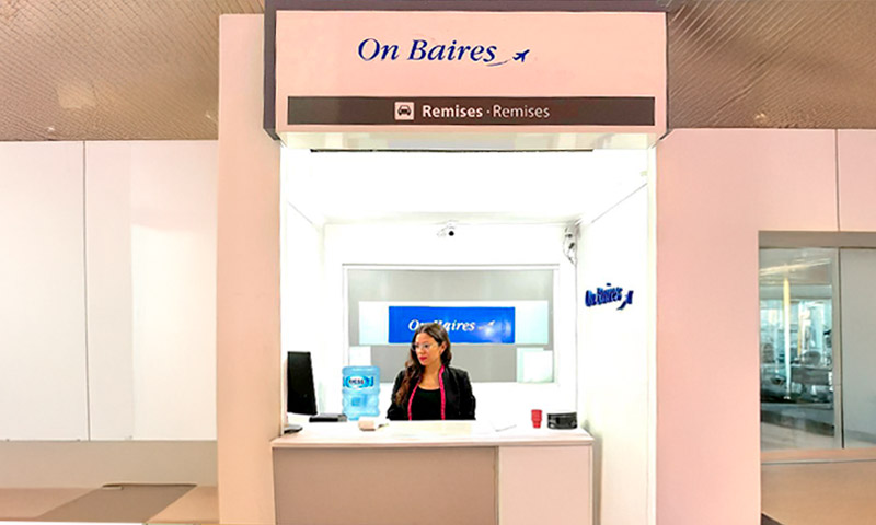 Tenemos tres stands en el aeropuerto de Ezeiza. Nos encontramos a la salida de las cintas de aduana. Nuestro stand de atención se encuentra visible antes y luego de la salida del hall del aeropuerto.